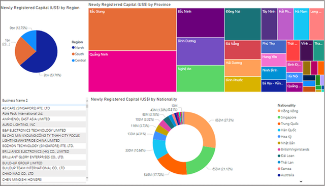 Ông John Campbell, Quản lý bộ phận Bất động sản công nghiệp Savills Việt Nam nhận định, khu vực phía Bắc nhận được phần lớn các khoản đầu tư mới đăng ký vào lĩnh vực sản xuất lên đến 1,97 tỷ USD, chiếm 64% thị phần. Tiếp theo là khu vực phía Nam với 728 triệu USD (23%), trong khi khu vực miền Trung thu hút 395 triệu USD (13%). Nếu xét theo các tỉnh, Bắc Giang có số vốn đăng ký mới cao nhất với 589 triệu USD, theo sau là Quảng Ninh với 569 triệu USD và Bắc Ninh với 222 triệu USD. Đại diện khu vực phía Nam là Bình Dương đứng ở vị trí thứ 4 với 208 triệu USD. Về khoản nhà đầu tư, các dự án sản xuất lớn nhất trong 6 tháng đầu 2021 là của Jinko Solar và Fukang Technology đến từ Hồng Kông (Trung Quốc) và Singapore, với số vốn đầu tư lần lượt là 498 triệu USD và 270 triệu USD tại Quảng Ninh và Bắc Giang. Nhộn nhịp mua bán Thị trường cũng chứng kiến một số các thương vụ M&A mới trong 6 tháng đầu năm 2021. Điển hình, Công ty TNHH Boustead Projects đã đạt được thỏa thuận mua lại 49% cổ phần trong Công ty CP Công nghiệp Logistics KTG & Boustead. Nếu thành công, sự hợp tác này sẽ mang tới 13 bất động sản (10 bất động sản trong số đó thuộc về KTG và 3 thuộc về Boustead Projects) với tổng giá trị tài sản lên tới 141 triệu USD, bao gồm khoảng 840.000m2 diện tích đất và khoảng 550.000m2 tổng diện tích cho thuê.